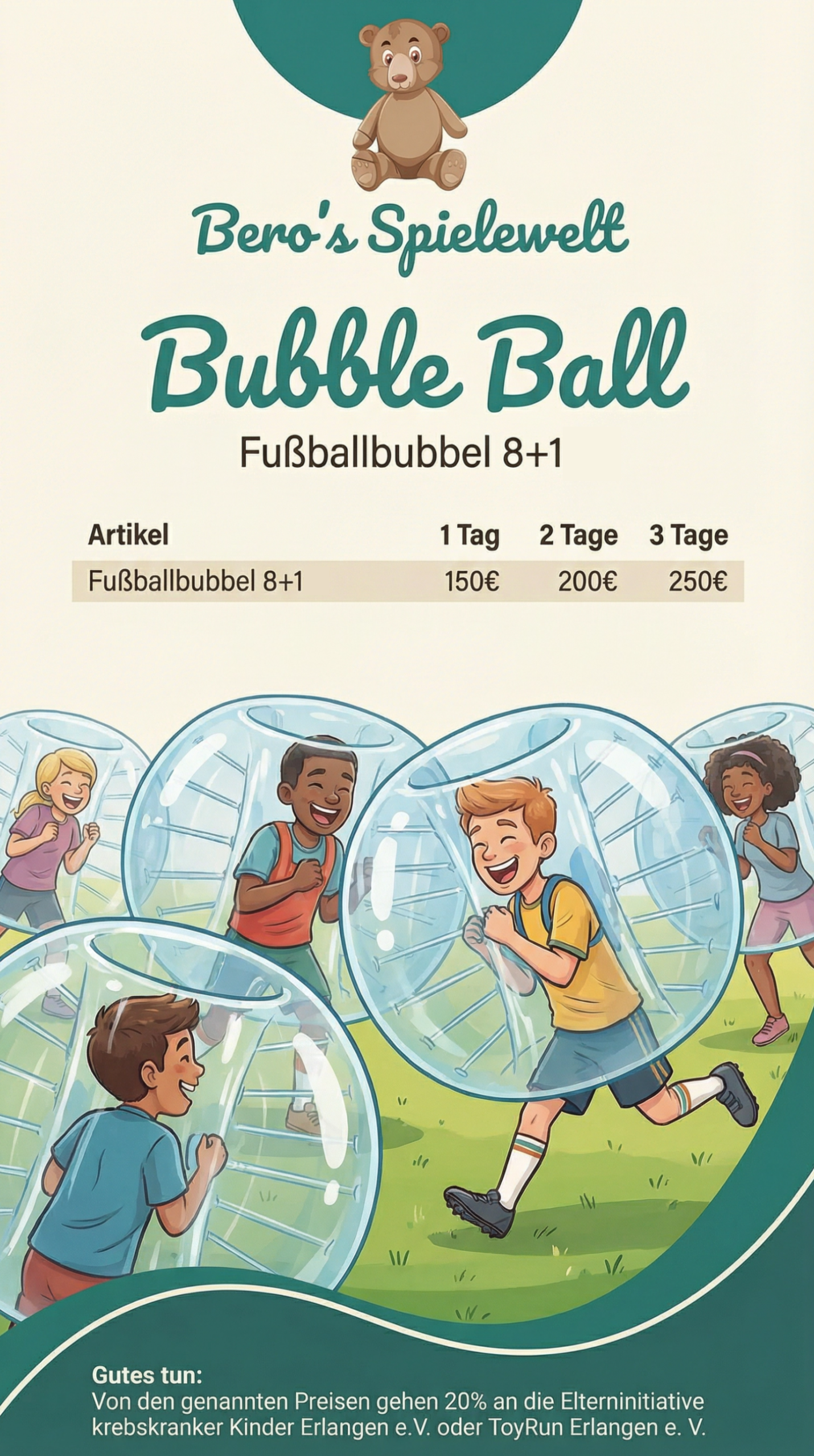 Die Kinder steigen in riesige, transparente Bälle und können sich richtig nach Herzenslust austoben.